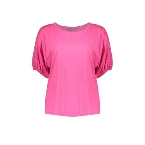 Stralend en stijlvol, dat is wat dit fuchsia kleurige t-shirt van Geisha Dames uitstraalt. Gemaakt van een mix van 50% katoen en 50% modal, biedt dit t-shirt een comfortabele en zachte pasvorm. Perfect voor iedere gelegenheid, van een casual dagje uit tot een avondje stappen. De korte mouwen en ronde hals maken het een tijdloze klassieker in je garderobe. Combineer het met een spijkerbroek en sneakers voor een casual look of met een rok en hakken voor een meer chique uitstraling. Met dit t-shirt ben je altijd modieus én comfortabel gekleed. Shop nu en voeg deze must-have toe aan je collectie!