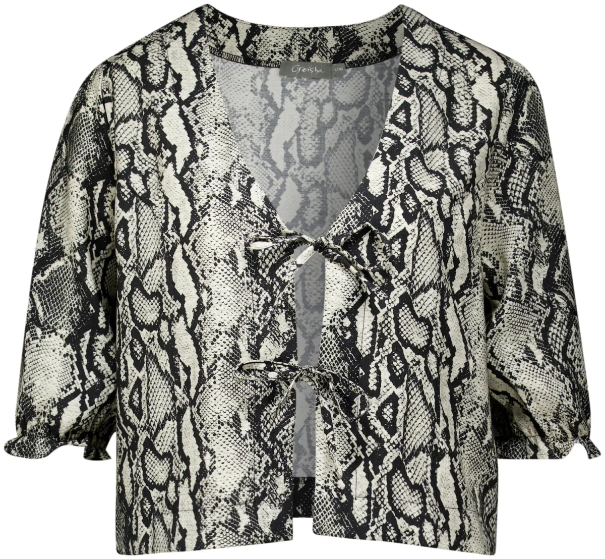 Dit stijlvolle Blouse van Geisha is een sophisticated damesblouse met een opvallende dierenprint. Gemaakt van comfortabel katoen, heeft het een cropped fit en 3/4 mouwen. De druk-knopen zorgen voor een eenvoudige sluiting, ideaal voor een modieuze en toegankelijke look.