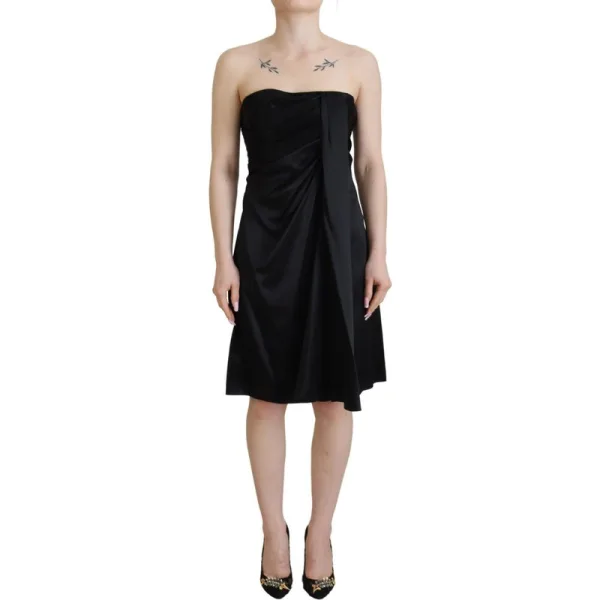 Maak een entree, steel de show, geef de avond vorm. Deze Dolce & Gabbana cocktailjurk zorgt ervoor dat je de aandacht trekt met tijdloze elegantie. Gemaakt van luxe zwarte zijde, creëert het strapless ontwerp en de gedrapeerde lijfje een flatterende silhoeët. De A-lijn rok voegt een vleugje verfijning toe, perfect voor elke speciale gelegenheid. Geniet van de onderhoudsvriendelijke constructie, zodat je jurk er altijd op zijn best uitziet. Ervaar technologie voor comfort de hele dag, waardoor je de nacht kunt wegdansen. Deze jurk biedt stabiliteit die de grond omhelst en een ruime, natuurlijke pasvorm. Van cocktailfeesten tot elegante diners, deze jurk integreert naadloos in je glamoureuze levensstijl.