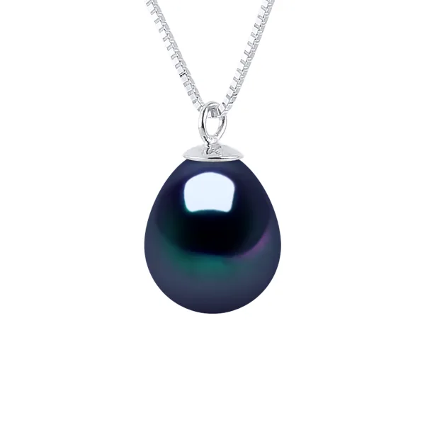 Ketting Genuine Gekweekte Pearl Zoetwater 8-9mm Pear - Quality AAAA + - Colori BLACK TAHITI - Pendant - Chain Venetian White Gold 375 duizendste - Lengte 42 cm - 2 jaar garantie op fabricagefouten - Geleverd in haar zaak met een certificaat van echtheid en een internationale garantie - Al onze juwelen zijn gemaakt in Frankrijk.