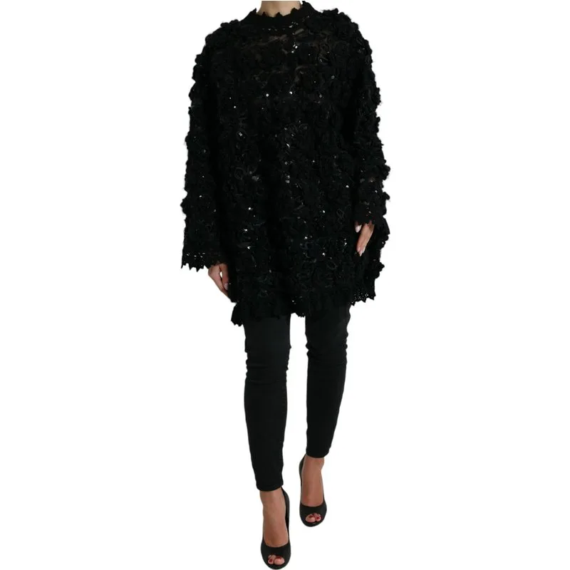 Schitter helder, voel je fantastisch en trek de aandacht. Deze Dolce & Gabbana tuniektrui voegt een vleugje luxe toe aan elke avond. De perfecte zwarte pailletten kant zorgt ervoor dat je opvalt in de menigte. De hoge kraag en lange mouwen bieden elegante bedekking, terwijl de relaxte pasvorm uitzonderlijk comfort en moeiteloze stijl biedt. Geniet van de duurzame, onderhoudsarme constructie van dit tijdloze stuk. Perfect om een verfijnde sprankeling toe te voegen aan je volgende speciale gelegenheid. Alleen chemisch reinigen.