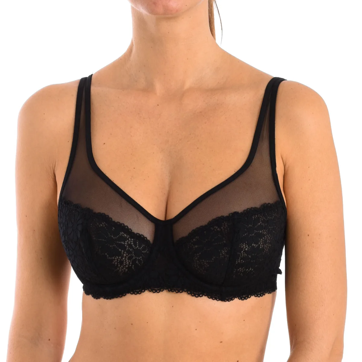 Beugelbeha Cups zonder schuim. Kanten cups, met chiffon detail aan de bovenkant. Elastische en verstelbare bandjes. Sluiting aan de achterkant met haakjes in drie posities. Elastische zijkanten, met versterkende staafinvoer. Stiksels in toon zichtbaar. Samenstelling: 92% Polyamide, 8% Elastaan Onderhoud: Wassen op maximale temperatuur van 40º. Niet bleachen. Niet in de droger. Niet strijken. Niet chemisch reinigen.