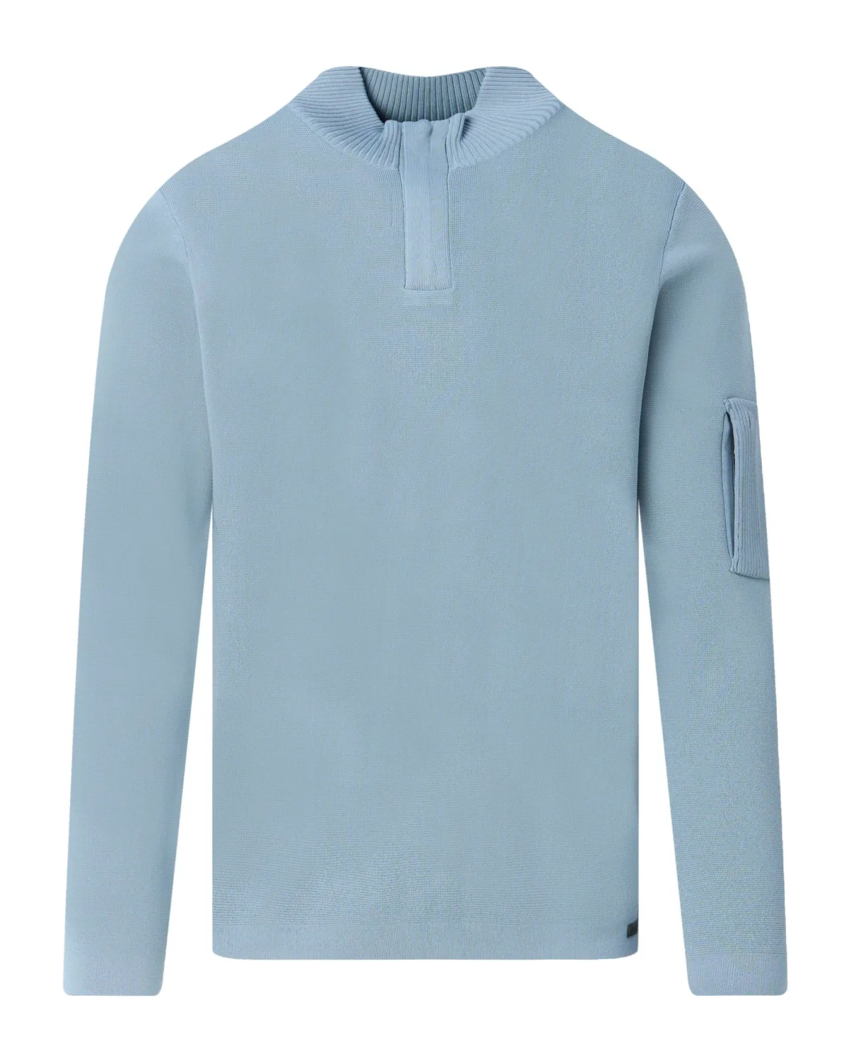 Genti | Heren | Pull Over Half Zip Licht Blauw