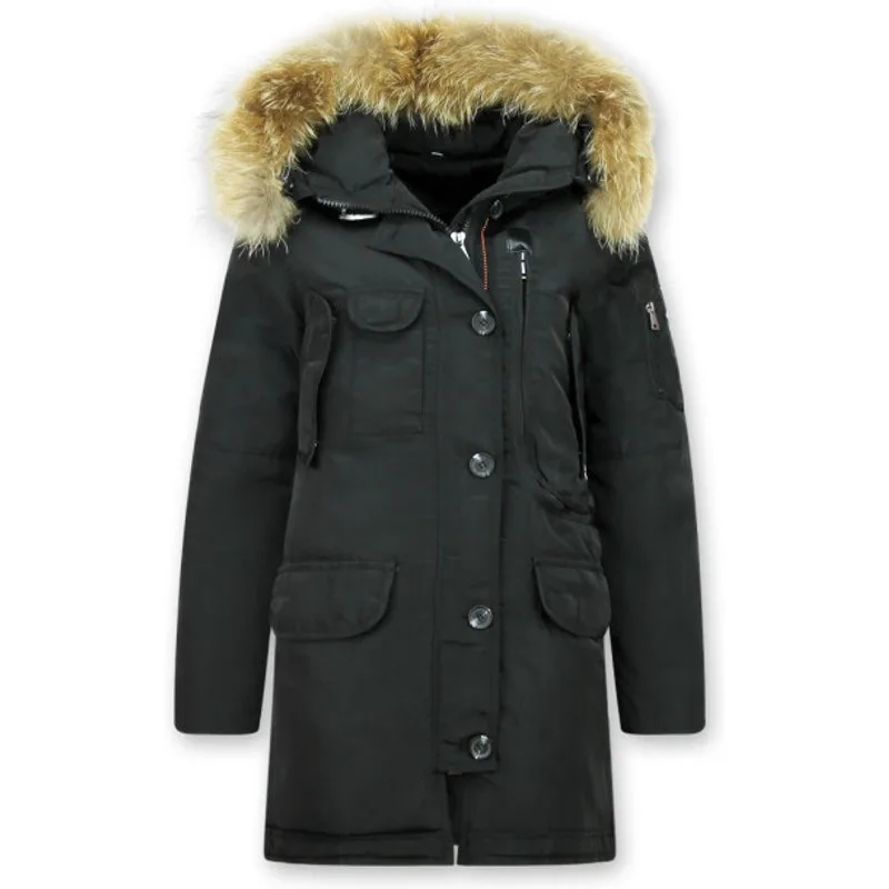 Deze Lange parka winterjas voor dames met bontkraag is in een zwarte kleur. Deze jas is niet getailleerd, heeft een normale pasvorm. - Productinformatie: Lange Parka Winterjas Dames Heeft een bontkraag Heeft een klassieke zwarte kleur Gemakkelijk te combineren met vele outfits Comfortabel en warm model, perfect voor de winter lang model met een slim fit pasvorm Het materiaal bestaat uit polyester De voering bestaat uit 75% polyester 25% katoen Heeft een rits met knopen als sluiting Het model heeft 2 jaszakken en geen binnenzakken De capuchon is niet afritsbaar De bontkraag is wel afritsbaar Breng hem naar de stomerij voor een maximale levensduur Kan ook gewassen worden op 30 graden Verkrijgbaar in de maten S – M – L – XLLet op: De bontkraag is een natuurproduct en hierdoor heeft