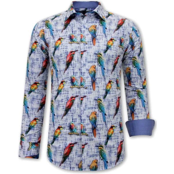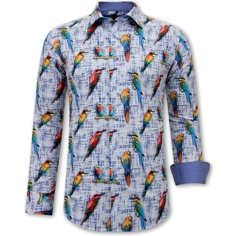 Overhemd met vogelprint . Uniek slim fit blouse wordt gemaakt van een zeer hoogwaardige kwaliteit katoen. Deze heren overhemden hebben een uitstekende afwerking en pasvorm. - Specificaties:- Overhemd met Vogelprint- Slim Fit Overhemden- Strijkvrij Overhemd- Pasvorm: Getailleerd Italiaans / SLIM FIT- Kleur: Blauw- Artikel code: 3122- Seizoen: Voorjaar / Najaar- Mouwen: Lange Mouwen- Patroon: Print - Kwalitatief Hoogwaardige Afwerking- Materiaal: 97% Katoen en 3% Lycra en Satijn- Weefsel: Dun geweven- Pasvorm: Getailleerd Italiaans / SLIM FIT- Wasvoorschrift: Machinewas 30 graden, Binnenste buiten wassen (Niet in de droger)- Beschikbare maten: S - M - L - XL - XXL - 3XL