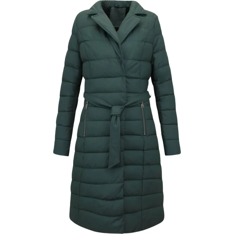 Puffer Jacket Dames Lang - 7921 - Groen - Productinformatie: Puffer jacket dames lang Heeft een zwarte opvallende kleur Met een zwarte jas maakt u een echt statement Comfortabel en warm model, perfect voor de winter Lang model met een slim fit pasvorm De voering bestaat uit 100% polyester Het materiaal bestaat uit 100% polyester Het model heeft twee jaszakken en geen binnenzak Heeft een rits met drukknopen als sluiting De capuchon is afritsbaar Breng hem naar de stomerij voor een maximale levensduur Verkrijgbaar in de maten S – M – L – XL