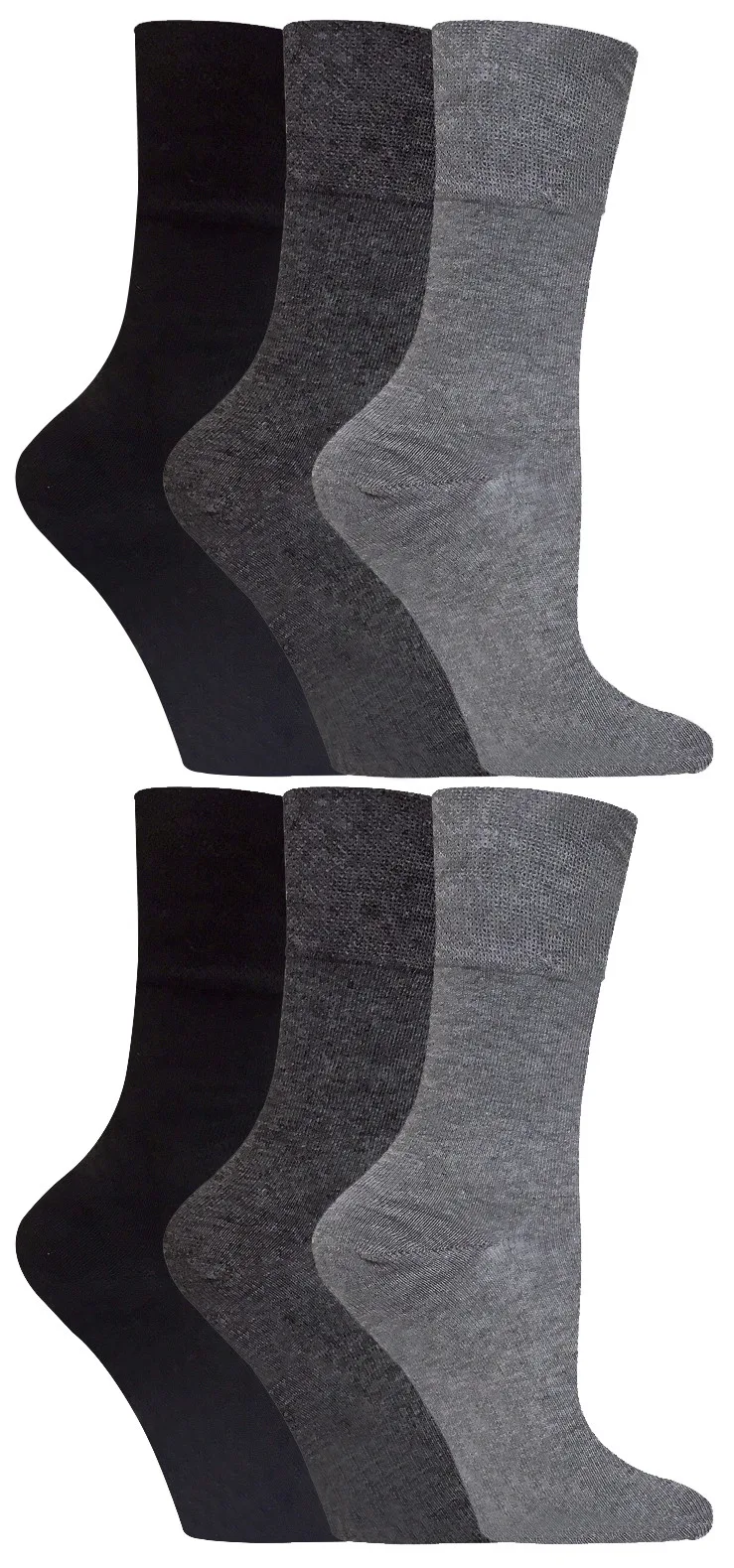 Gentle Grip – 6 paar diabetische damessokken – Grijs 36