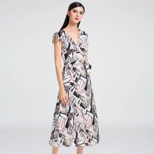 Specificaties: Geometrische afdruk Midi Wrap -jurk