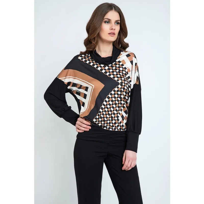 Geometrische Batwing Top van Conquista Fashion in duurzame stof viscose-elasthan. Gemaakt in Griekenland.