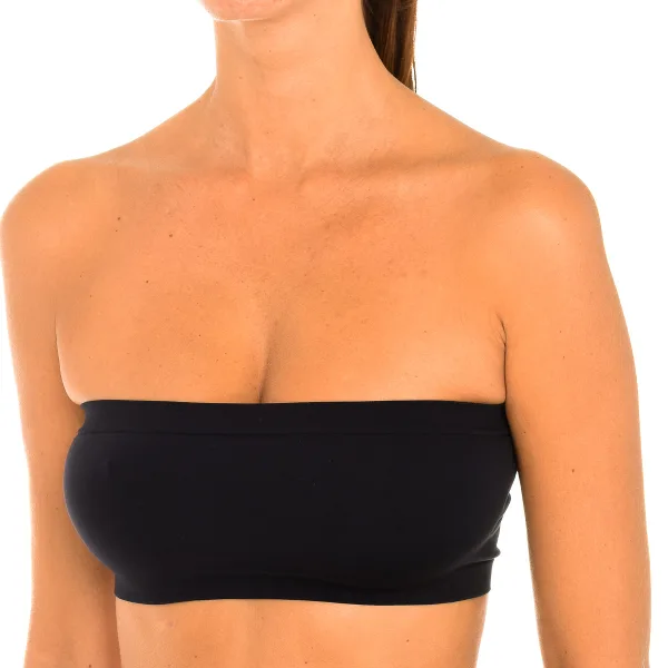 Naadloze band. Kleur Zwart Damesborstband zonder beugel. Ongevuld. Gemaakt van zachte stretch microvezel, zonder naden. Samenstelling: - 92% Polyamide - 8% Elastaan. Onderhoud: - Wassen op een temperatuur van max.30º. - Geen bleekmiddel gebruiken. - Niet in de droger. - Niet strijken. - Niet chemisch reinigen.