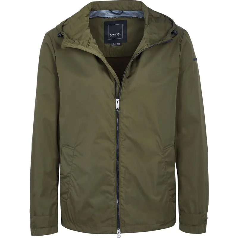 100% Polyester; Geox-jas; Model: M0220UT2599F3215; Hoogwaardige afwerking; kap; Twee voorzakken; Rits; Geox-logodetails