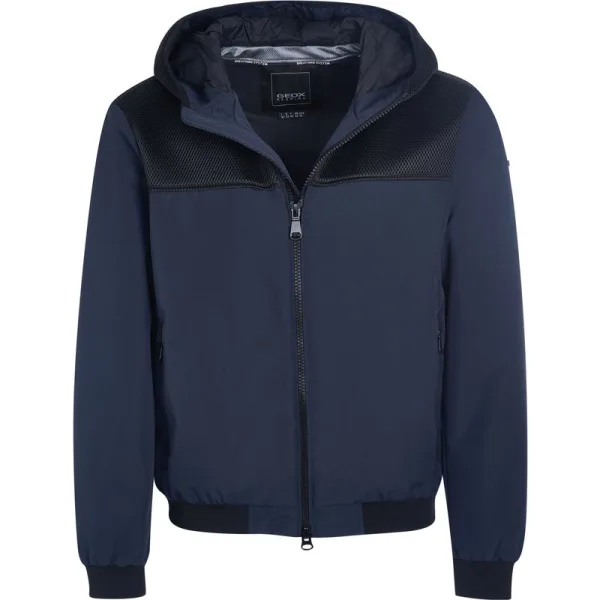 100% Polyester; Geox-jas; Model: M0221NT2634F4386; Hoogwaardige afwerking; kap; Twee voorzakken; Rits; Geox-logodetails