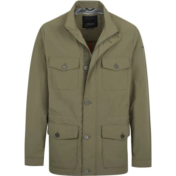 79% polyamide, 21% katoen; Geox-jas; Model: M9221QT2538F3172; Hoogwaardige afwerking; normale pasvorm; opstaande kraag; Knoopsluiting met 6 knopen; tweewegritssluiting; Twee borstzakken, vier voorzakken, één binnenzak; Verstelbare taille; Geox-logodetails