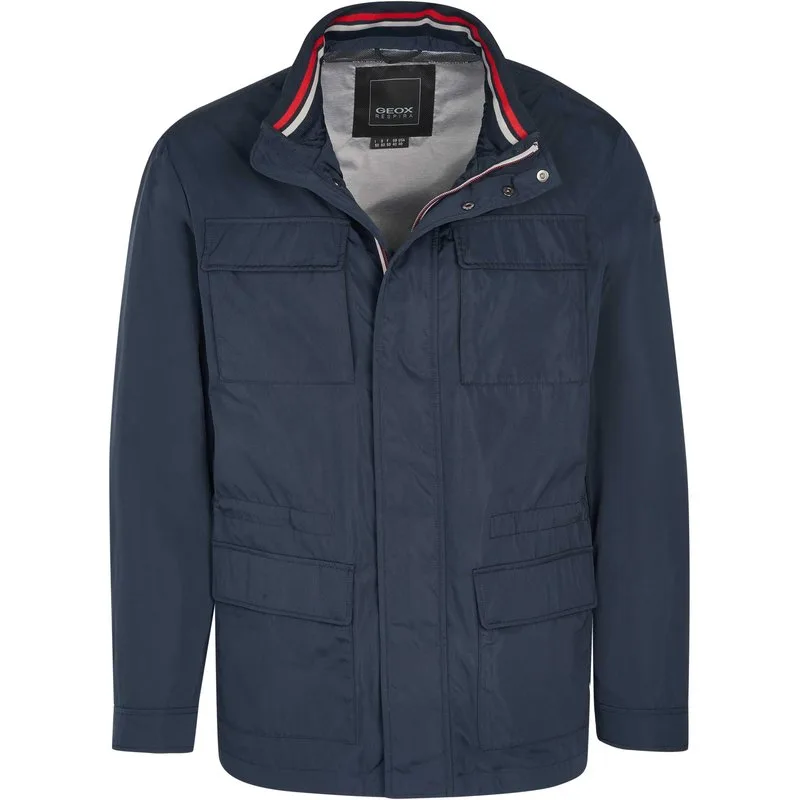 100% Polyester; Geox-jas; Model: M1220WT2815F4386; Hoogwaardige afwerking; Afneembare capuchon; Twee voorzakken, twee borstzakken; Rits; Geox-logodetails