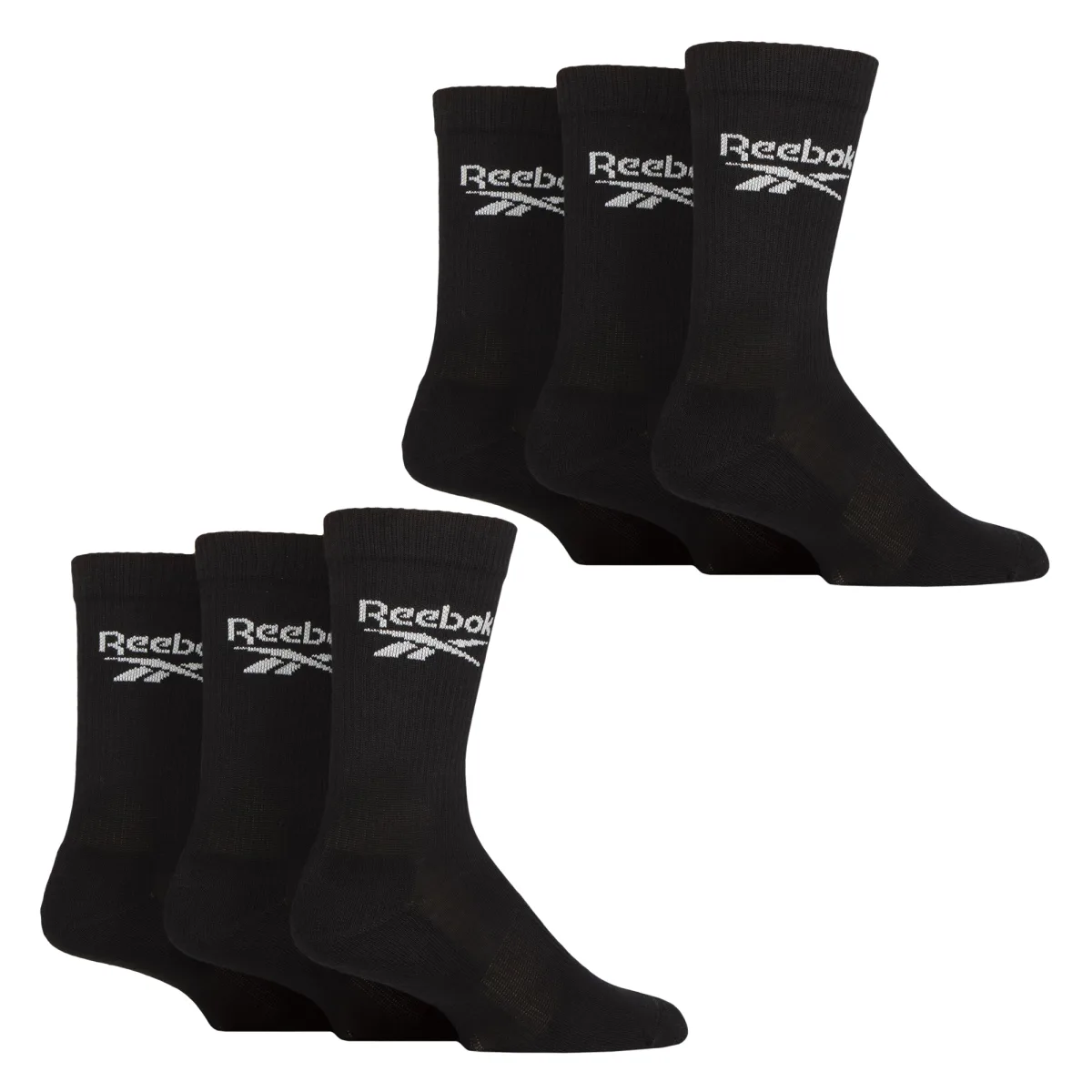 Reebok - 6 Paar Heren & Dames Core Geribbelde Katoenen Crew Sokken: De Reebok Core Geribbelde Crew Sokken zijn de perfecte aanvulling op je dagelijkse sokken collectie. Met een klassiek ontwerp dat het iconische Reebok-logo bevat, bieden deze sportieve geribbelde sokken een zachte, rekbare feel, waardoor ze ideaal zijn voor comfort gedurende de dag. De ingebouwde ondersteuning van de voetboog is speciaal ontworpen om een veilige, snug fit te bieden die zich aanpast aan de natuurlijke contouren van je voet, wat helpt vermoeidheid te verminderen en de stabiliteit gedurende de dag te verbeteren. Dit maakt geribbelde sokken ideaal voor het behouden van een stevige pasvorm rond de kuit, biedt een zachte compressie die de bloedsomloop bevordert en het doorhangen voorkomt, wat vooral nuttig is tijdens lichamelijke activiteit of lange periodes van dragen. Het naadloze teenontwerp elimineert de traditionele dikke naad die in de meeste sokken te vinden is, waardoor het risico op irritatie en wrijving vermindert. Deze eigenschap verhoogt het comfort, vooral tijdens lange draagperiodes, omdat het drukpunten en schuren rond de tenen voorkomt. Ideaal voor wie een onopvallende en minimalistische stijl verkiest, passen deze sokken naadloos bij elke outfit, terwijl ze gedurende de dag maximaal comfort bieden. Deze sokken bieden een geweldige balans van zachtheid, duurzaamheid en flexibiliteit. Verkrijgbaar in verpakkingen van 6 paar, komen ze in Zwart of Wit, en drie UK maten: 6-8, 8-10 en 10-12. Gemaakt van een ademende katoenmix met 59% Katoen, 36% Polyester, 4% Elastaan en 1% Polyamide, zijn ze ook machinewasbaar op 40°, wat ze gemakkelijk te onderhouden maakt en perfect voor dagelijks gebruik. Extra Productdetails: Reebok Core Crew Sokken Steun voor de Voetboog voor Snug Fit Katoenmix Naadloze Teen & Gevoerde Zool Geribbelde Pijp voor Comfort Verkrijgbaar in Zwart & Wit Zacht en Ademend 6 Paar Per Verpakking 3 UK Maten: 6-8, 8-10, 10-12 Machinewasbaar