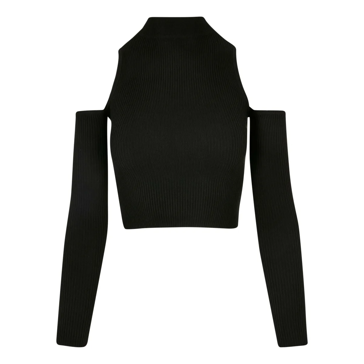 Dit model voor dames met lange mouwen straalt verfijning en originaliteit uit: de schouders en bovenarmen van de lange mouwen zijn open en tonen daardoor een beetje sexy huid. De korte lengte en de hoge col passen perfect bij het basisontwerp, dat nog wordt aangevuld door het gekozen materiaal, een aangenaam elastische geribde stof (polyacryl, viscose en nylon). Nog een detail: de stijl is manchetloos. Tot slot heeft de aantrekkelijke damestop een slanke pasvorm.Buitenstof 1: 35% Acryl 35% Viscose 30% Nylon & Polyamide, Geribd breisel, Acryl/Viscose/Nylon, 12 gg