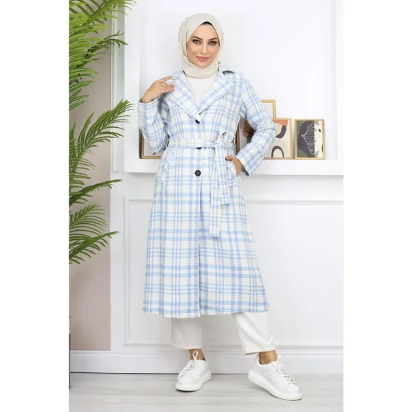 Stof Kenmerk: Gemaakt van Chanel stof. Product Kenmerk: Nieuwe seizoen hijab modeproduct. Ongevoerd. De riem is afneembaar. Er is een zak. Het heeft functionele knopen aan de voorkant. De kleur van het product kan verschillen door conceptfoto's. Het model draagt maat 38. Maat 38 Jacket Afmetingen: Product Lengte: 118 cm - Borst: 96 cm - Taille: 92 cm - Heupen: 100 cm Lichaamsafmetingen nemen met 3 of 4 cm toe. (Productlengte verandert niet)