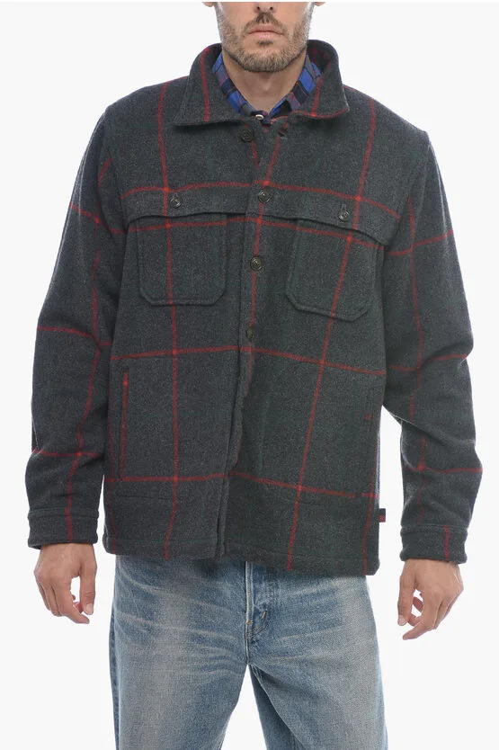 Geruit MALONE Overshirt van wolmix in grijs Prijzen