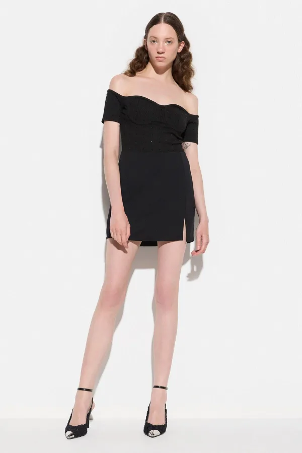 Design: Beenopening; Type sluiting: Ritssluiting; Motief: Effen; Rokvorm: Minirok; Extra's: Op staal naden; Lengte: Kort/mini; Pasvorm: Slanke pasvorm