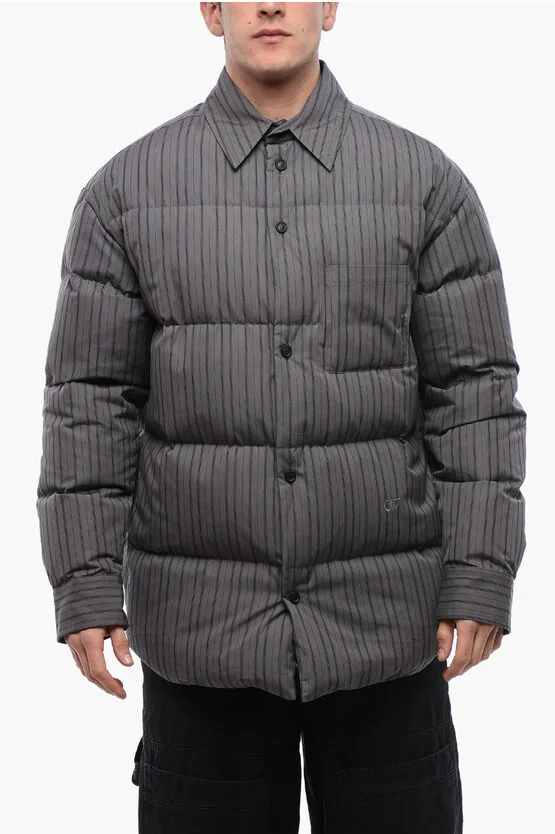Gestreept katoenen gewatteerd omkeerbaar overshirt in grijs