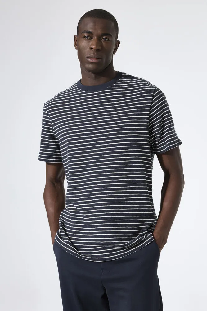 T-shirt met streeppatroon. Dit T-shirt heeft een ronde hals, korte mouwen en een regular fit. Dit item is gemaakt van 100% katoen. Better Cotton is een initiatief dat zich wereldwijd inzet voor betere omstandigheden in de katoenindustrie.