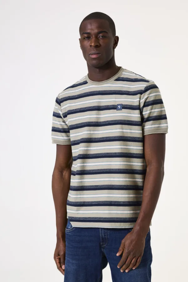Gestreept T-shirt voor heren. Dit T-shirt heeft een ronde hals, korte mouwen en een regular fit. Dit item is gemaakt van 100% katoen en biedt optimaal comfort voor dagelijks gebruik. Het streeppatroon geeft een frisse uitstraling, perfect voor een casual look. Combineer het met je favoriete jeans voor een moeiteloze stijl. Better Cotton is een initiatief dat zich wereldwijd inzet voor betere omstandigheden in de katoenindustrie.