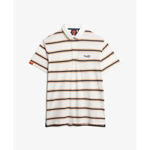 Casual fit - de klassieke pasvorm van Superdry. Niet te strak en niet te wijd. Gewoon goed. Kies je gebruikelijke maat. Eenvoudige kraag met knoopsluiting. Korte mouwen en handtekening label. Geborduurde tekst op de borst. Strepen zijn deze seizoen trendy, dus presenteren we de lichte gestreepte polo in jersey die maximaal stijl biedt in een klassieke geest. Met zijn lichte materiaal is hij perfect voor de zomer en de vintage-geborduurde opdruk geeft hem nog meer een retro uitstraling.