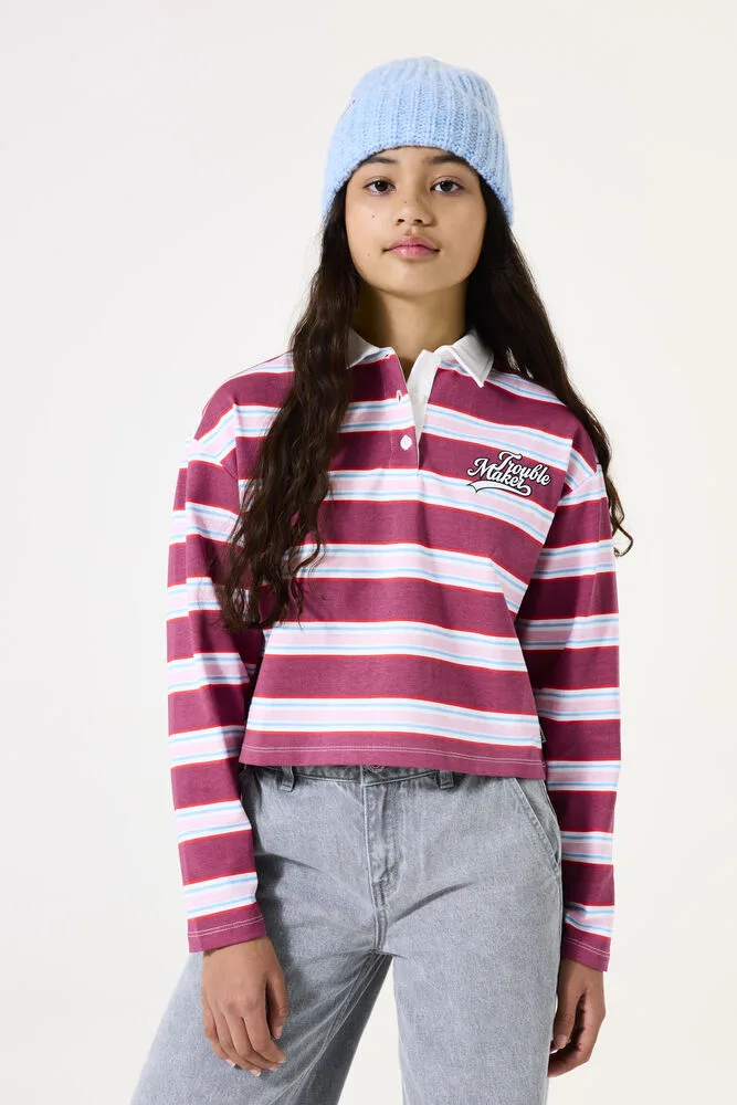 Gestreepte polosweater met een sportieve uitstraling. Deze sweater heeft een polokraag, lange mouwen en een relaxed fit. Dit item is gemaakt van 100% katoen. Better Cotton is een initiatief dat zich wereldwijd inzet voor betere omstandigheden in de katoenindustrie.