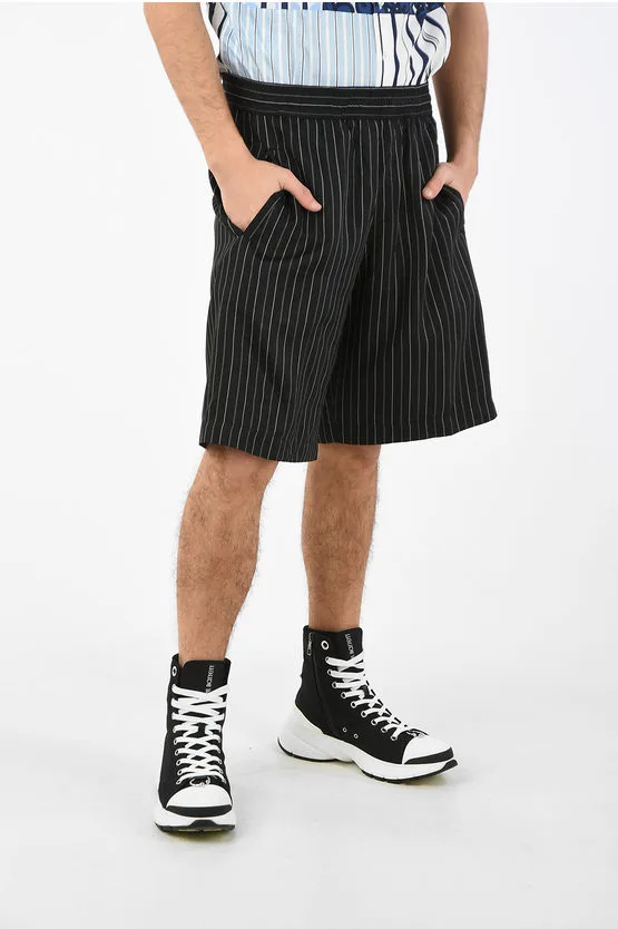 Lente-Zomer, Zwart, Zakken, 3 zakken, Trekkoord in de taille, Gemaakt in Italië, Trekkoord in de halslijn, Platte voorkant, Normale taille, Strepen, ZOMERESSENTIALS, City Shorts