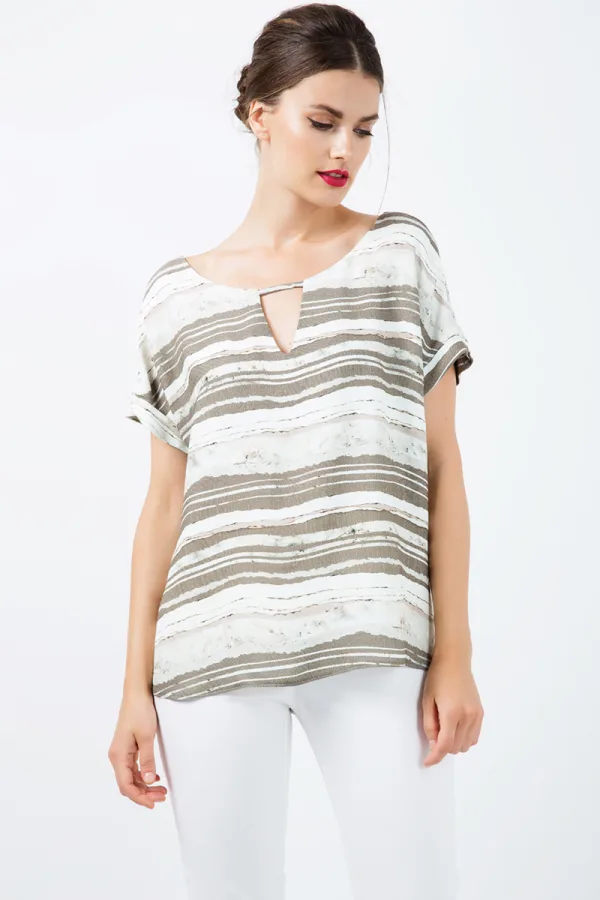 Gestreepte top met sleutelgat en korte mouwen
