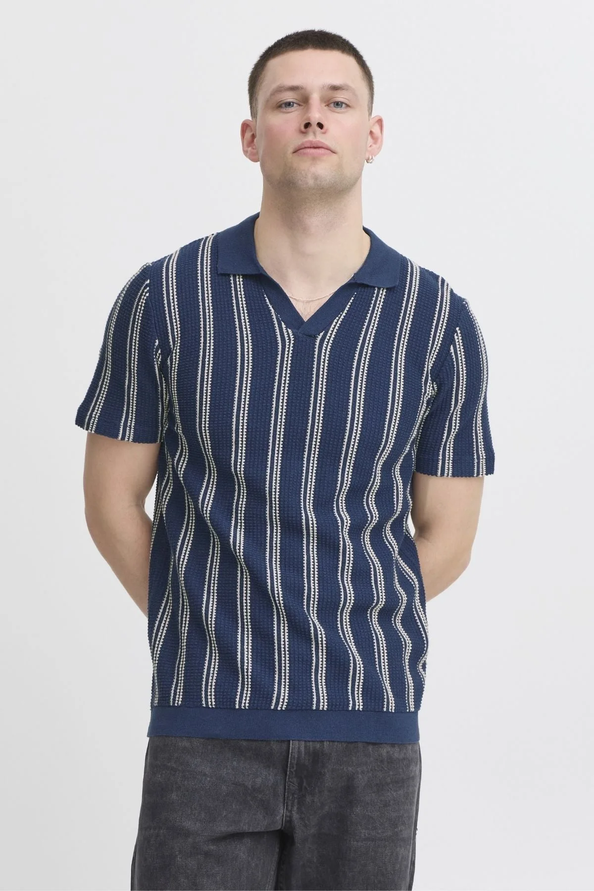 Deze gestreepte trui in blauw voor heren is de perfecte keuze voor elke stijlbewuste man. Het combineert comfort en moderniteit op een elegante manier. Het is handgemaakt van 100% katoen en biedt ultieme zachtheid en warmte, ideaal voor elke gelegenheid, zowel casual als iets formeler. Het tijdloze design zorgt ervoor dat het een essentiële toevoeging is aan je garderobe. Het gestreepte detail geeft een moderne twist aan de klassieke look die nooit uit de mode raakt. Voor de stijlvolle man die geen concessies doet aan comfort of stijl.