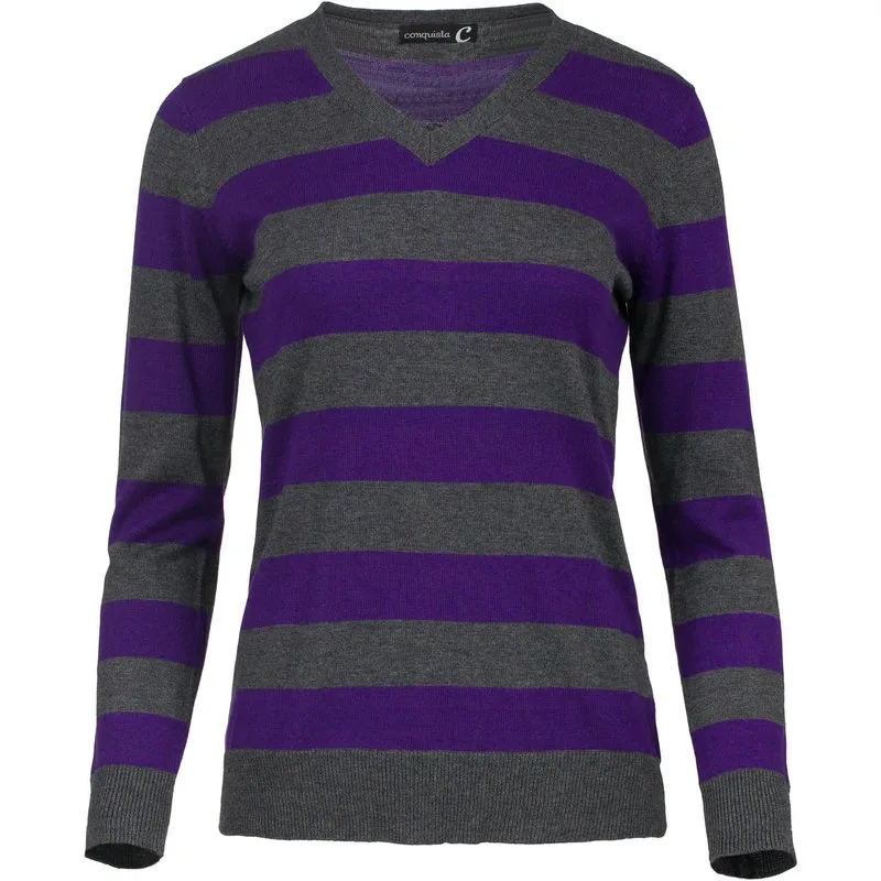 Gestreepte trui met lange mouwen en V-hals