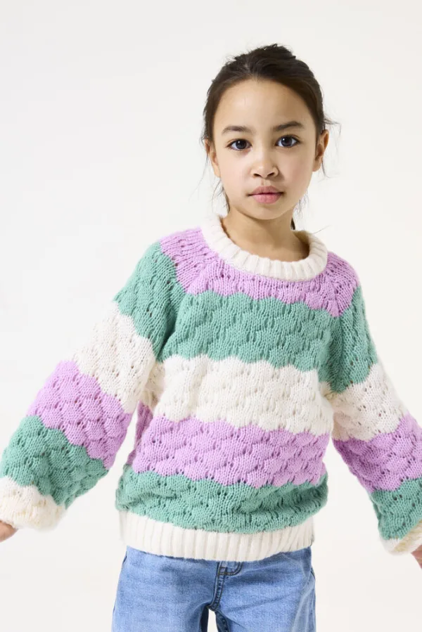 Kleurige trui met streepdessin. Deze trui heeft een ronde hals, lange mouwen en een regular fit. Dit item is gemaakt van 100% polyester, wat zorgt voor een comfortabele en zachte draagervaring. Dit GARCIA kledingstuk is gemaakt met gebruik van recyclede garen. Recyclede materialen worden gemaakt uit restmateriaal, wat weer wordt omgezet tot grondstof.