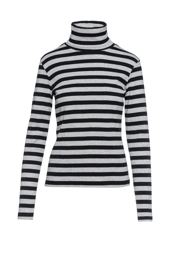 Gestreepte zwart-grijze trui met polohals Prijzen