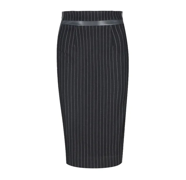 Gestreepte, zwarte kokerrok met leren details Prijzen
