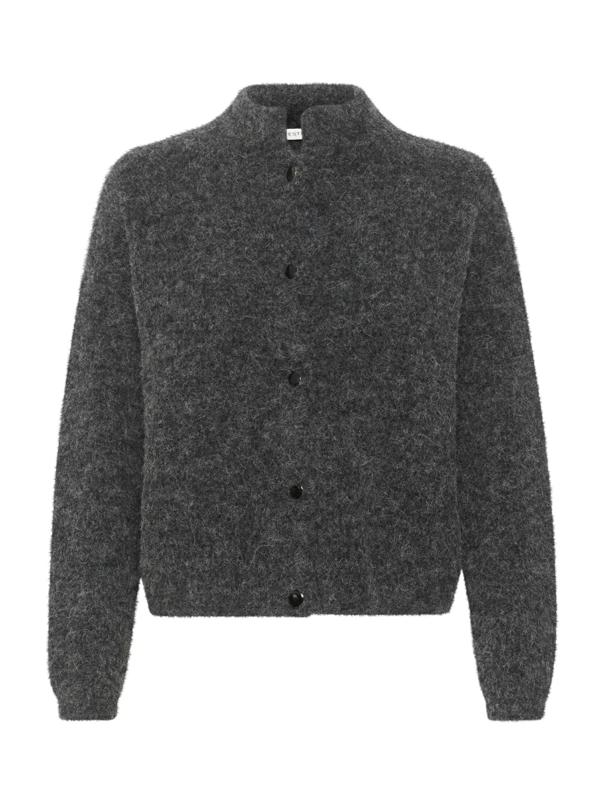Design: Geribbelde kraag, Geribd ceintuurtje; Type sluiting: Knoopsluiting; Materiaal: Knitwear; Halstype: Opstaande kraag; Motief: Mélange; Extra's: Gestructureerd oppervlak, Milieuvriendelijk geproduceerd; Pasvorm: Losse pasvorm; Armlengte: Lange mouw; Lengte: Normale lengte