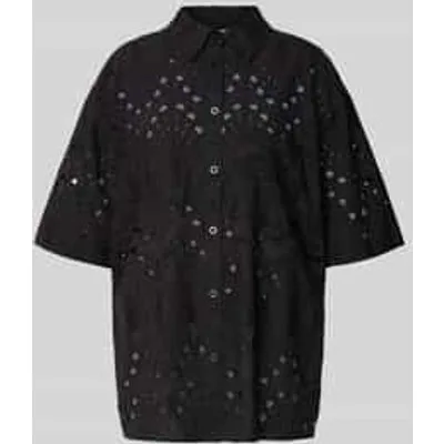 Overhemdblouse van Gestuz voor dames;Puur katoen;Relaxed fit;Model 'baylor';1/2-mouw;Knoopsluiting;Gaatjesmotief;Overhemdkraag;Ruglengte bij maat 36: 76 cm;Mouwlengte bij maat 36: 30 cm