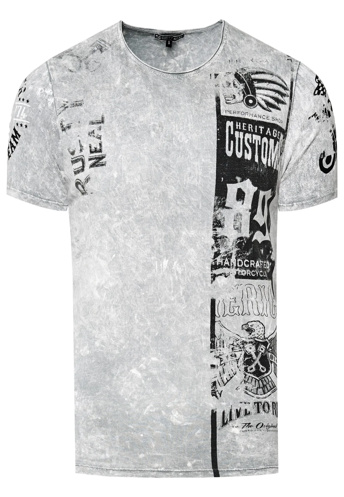 Gewassen biker Tshirt met voor en achterkant bedrukt