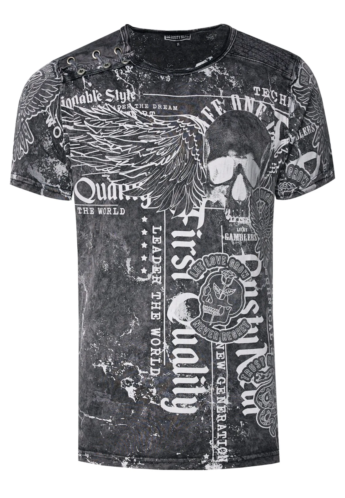 Gewassen T-shirt met “Flying-Skull” print Prijzen