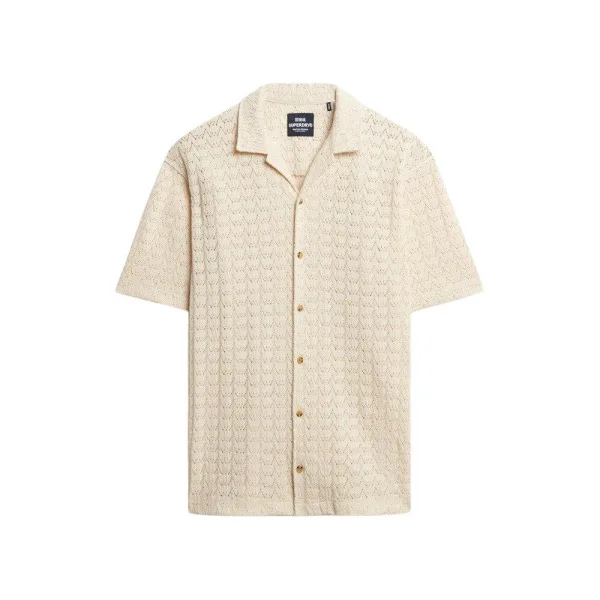 Relaxte pasvorm - de klassieke Superdry-pasvorm. Niet te nauwsluitend, niet te ruim, precies goed. Kies je gebruikelijke maat Standaardkraag Knoopsluiting Gebreide textuur Kenmerkende tab op de zoom Een iconisch basisstuk dat het hele seizoen door een zomers gevoel geeft. Het gebreide overhemd met textuur is uitgevoerd in een luxe haaksteek om een eigentijdse optie in je garderobe te worden, een echt verfijnd statement. Of je nu een look combineert met ambachtelijke flair voor een stranddag of v