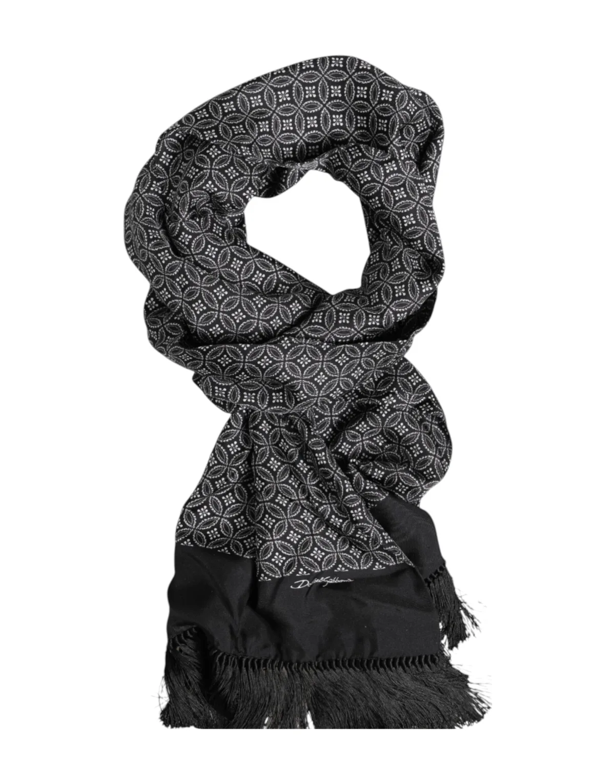 Omhul jezelf in luxe, til je dagelijkse uitstraling naar een hoger niveau. Dit zijden halswarmersjaal voegt een vleugje elegantie toe aan elke outfit. Gemaakt van luxueuze zijde, biedt het verfijnde zwart-witte patroon tijdloze stijl. De delicate franjes geven een verfijnde afwerking. Geniet van het zachte gevoel tegen je huid, perfect voor de hele dag. De duurzame constructie zorgt voor blijvende schoonheid. Of je nu jezelf kledet voor een speciale gelegenheid of flair toevoegt aan je dagelijkse look, deze sjaal is het perfecte accessoire. Afmetingen: