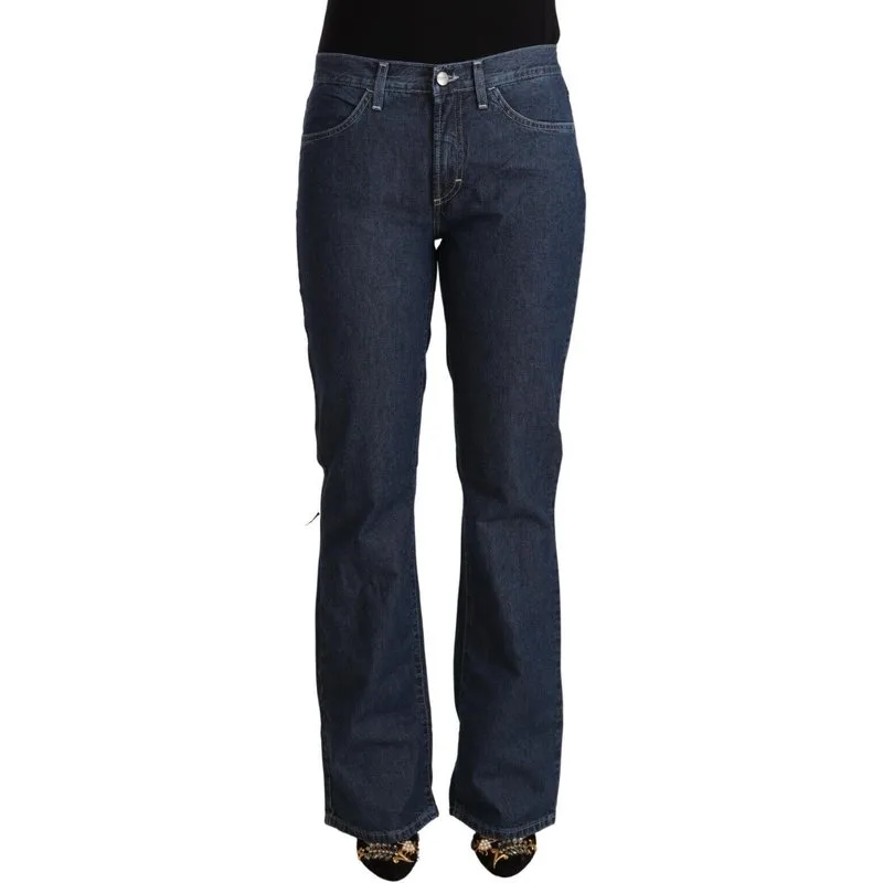 GF FERRE Prachtige gloednieuwe jeans met etiketten, 100% Authentiek GF Ferre, vervaardigd uit katoen, met een flared snit en ritssluiting met knoop. Materiaal: 100% Katoen Kleur: Blauw Model: Mid waist jeans Ritssluiting en knoop Sluiting met logo-details