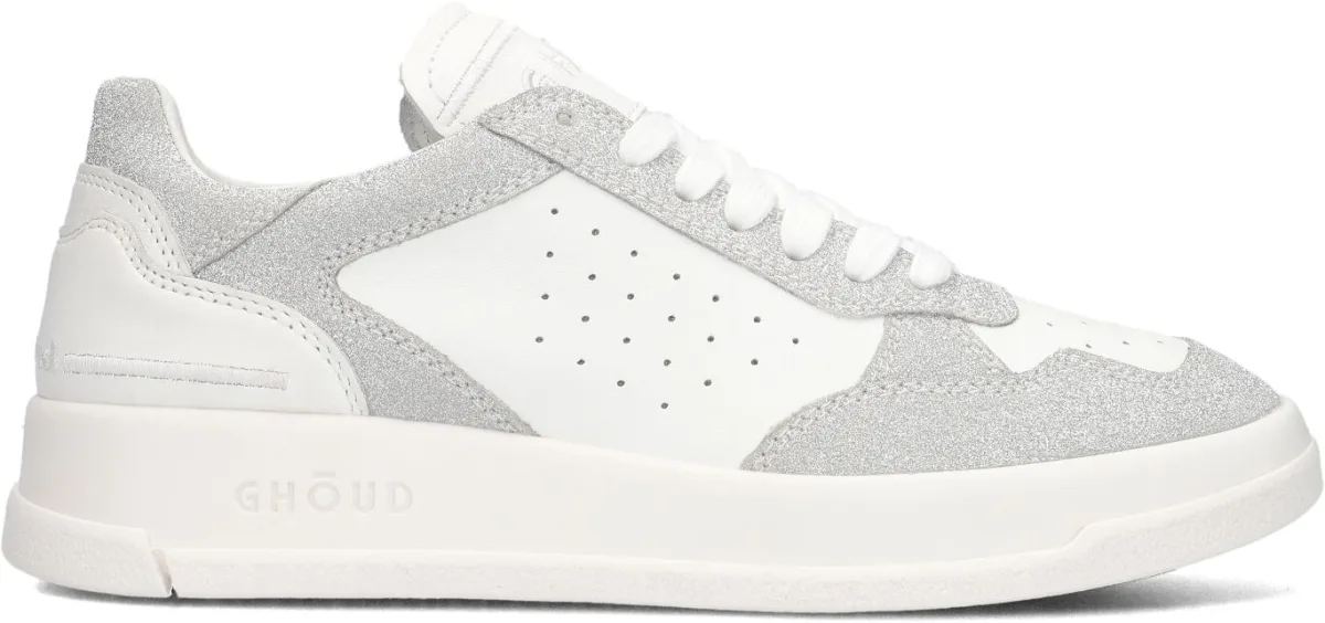 Stap in stijl met de TWEENER sneakers van GHOUD. Deze trendy schoenen zijn perfect voor dames die op zoek zijn naar comfort en fashion in één. De schoen is gemaakt van leer in combinatie met panelen van zilverkleurig glitter. Combineer ze met een stoere jeans en een casual t-shirt voor een relaxte look, of draag ze onder een jurkje voor een sportieve twist. Of je nu gaat shoppen in de stad of een wandeling maakt in het park, met de TWEENER sneakers loop je er altijd fashionable bij.