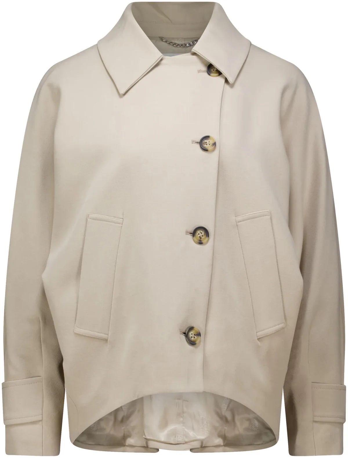 Mantel van Giacomo met minimalistische blazeruitstraling. De gespreide kraag, lange mouwen en manchetten met knopen geven een nette lijn. Regular pasvorm, effen ontwerp en zakken op de voorzijde maken het praktisch voor casual en nette momenten. Combineer met een rechte broek of jurk.