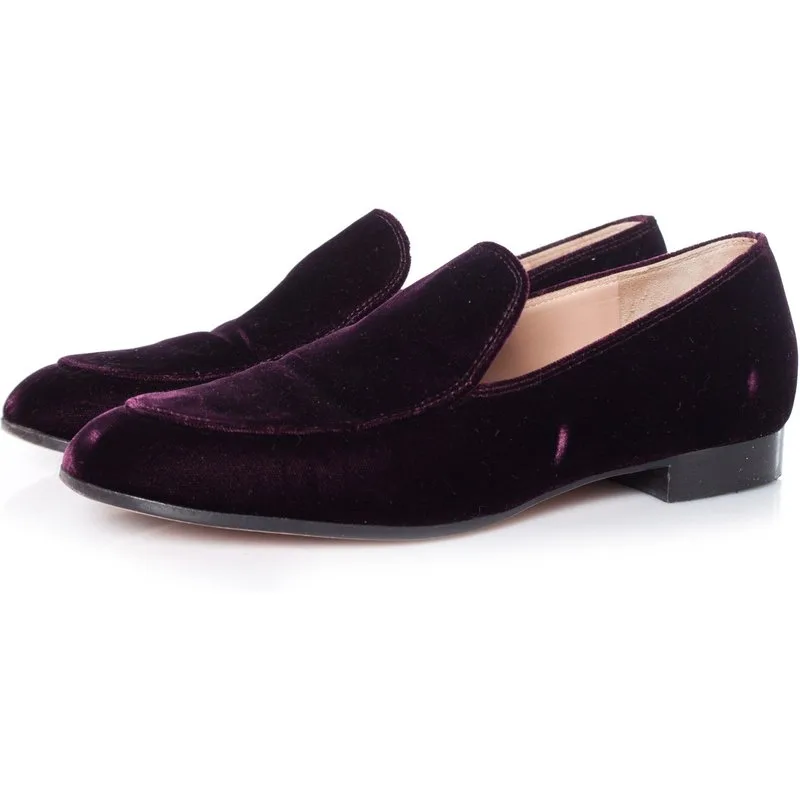 Gianvito Rossi, bordeauxrode marcel fluwelen loafers. Prijzen