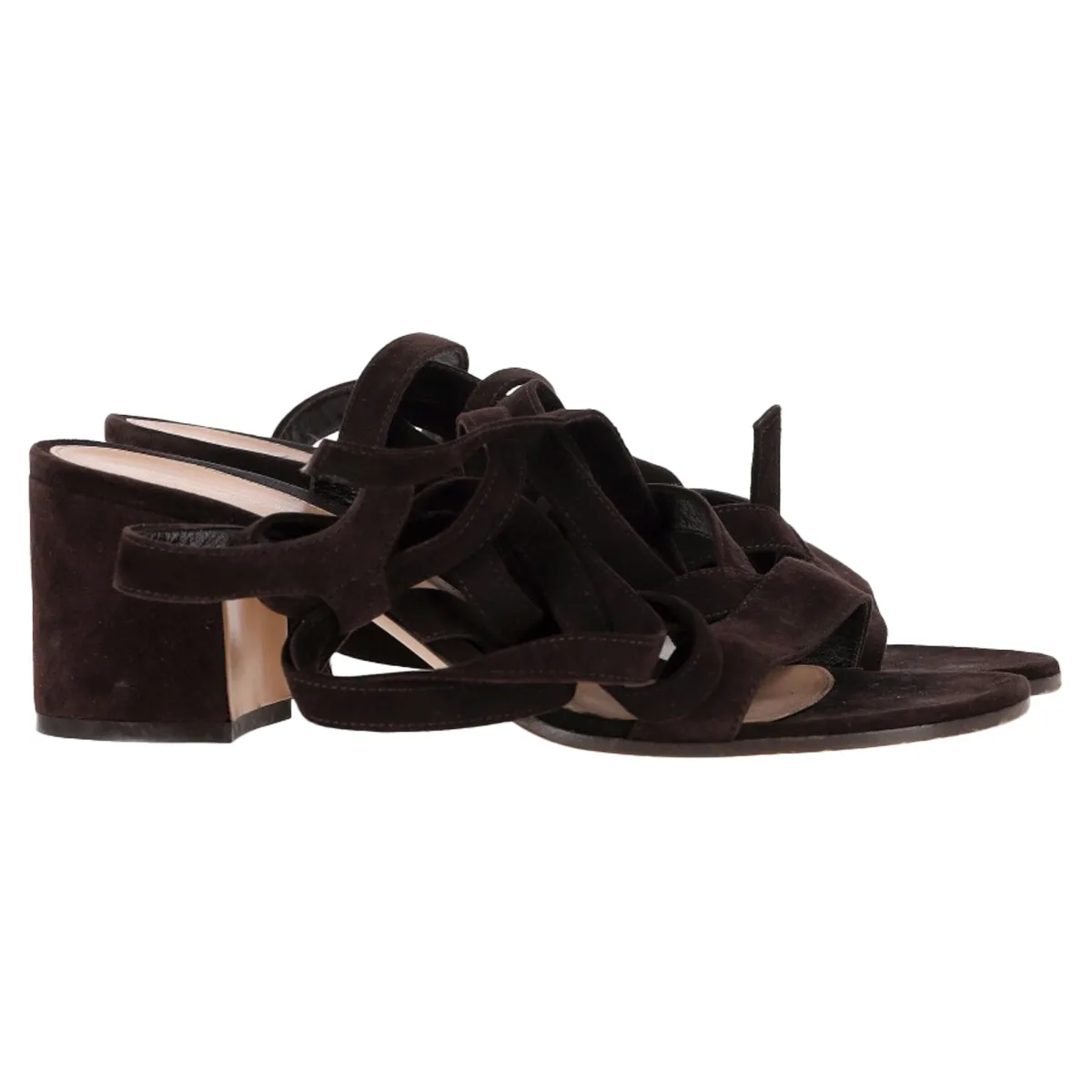 Gianvito Rossi Gestrikte Blockhak Sandalen in Bruin Suède Prijzen