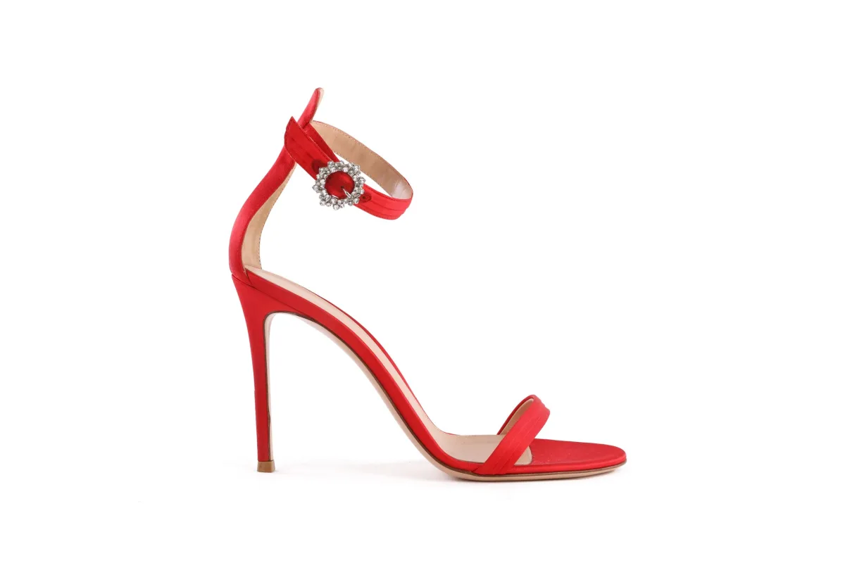 - Bij vd.nl kun je Gianvito Rossi Portofino 100 Kristalversierde Rode Satijnen Sandalen kopen voor slechts €340,00