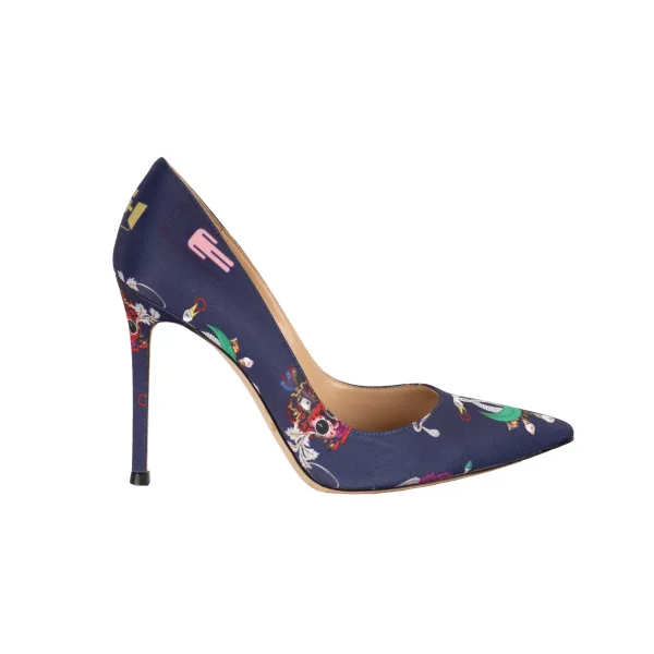 Specificaties: Gianvito Rossi Zijden Bedrukte Hakken – ’10s