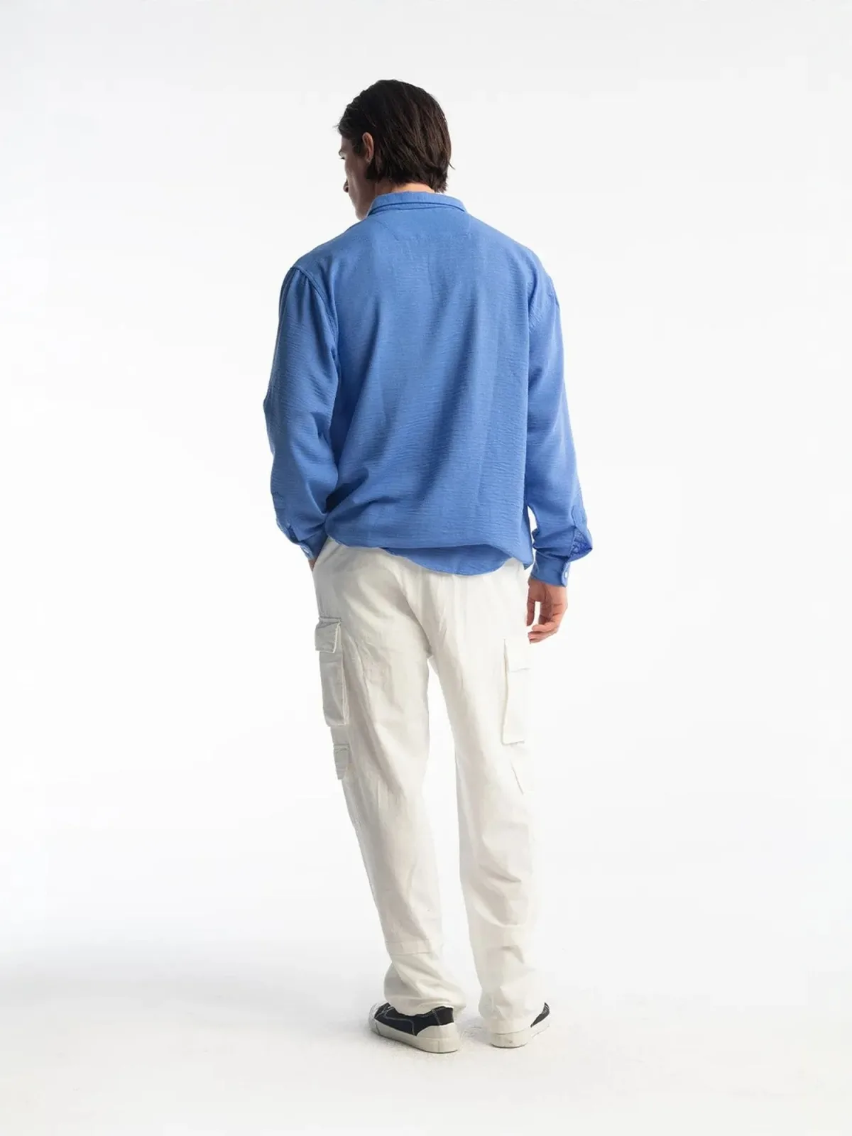 Design: Knop placket; Type sluiting: Knoopsluiting; Halstype: Ronde hals; Motief: Effen; Kraag: Button-down; Extra's: Slubstructuur; Pasvorm: Losse pasvorm; Pasvorm: Comfort fit; Armlengte: Lange mouw