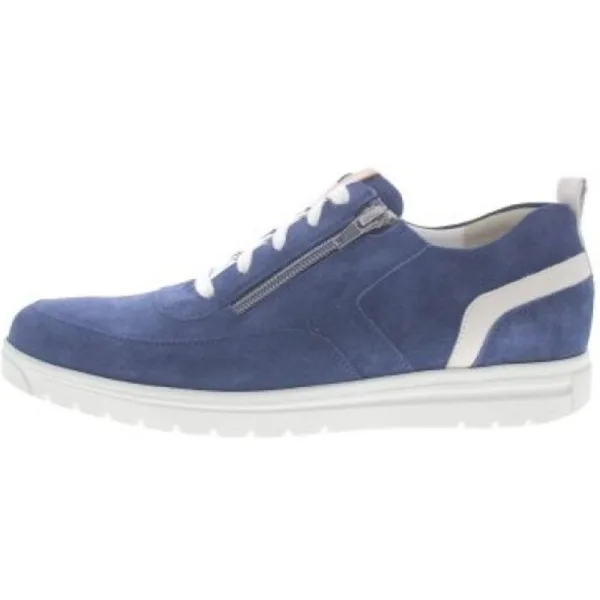 Gijs 2085 – Stijlvolle Suède Sneaker in Donkerblauw (Wijdte G)Combineer moeiteloos comfort met een moderne uitstraling met deze luxe herensneaker van het Nederlandse kwaliteitsmerk Gijs. Uitgevoerd in prachtig diepblauw suède en voorzien van subtiele witte accenten, is dit de ideale schoen voor de man die waarde hecht aan een verzorgde, casual look.Waarom kiezen voor de Gijs 2085?Hoogwaardig Materiaal: Vervaardigd uit eersteklas suède dat zacht aanvoelt en zich naar de voet vormt.Gemakkelijke Instap: Naast de vetersluiting beschikt deze schoen over een praktische ritssluiting aan de zijkant. Hierdoor trek je ze razendsnel aan en uit zonder telkens de veters te hoeven strikken.Wijdte G: Deze schoen heeft een standaard leest (Wijdte G), wat hem geschikt maakt voor de gemiddelde voet.Ultiem Comfort: De sneaker is volledig leergevoerd, wat zorgt voor een goed ademend vermogen en een fijn voetklimaat.Uitneembaar Voetbed: Ideaal voor mannen die eigen steunzolen gebruiken; het originele voetbed is eenvoudig te vervangen.Specificaties op een rij:Kleur: Marine (Donkerblauw)Materiaal: SuèdeVoering: LeerSluiting: Veter + RitsZool: Lichtgewicht rubber met goede gripWijdte: G (Gemiddeld)Stylingtip: Draag deze sneakers onder een donkere jeans of een chino voor een smart-casual outfit die zowel naar kantoor als in de vrije tijd gedragen kan worden.
